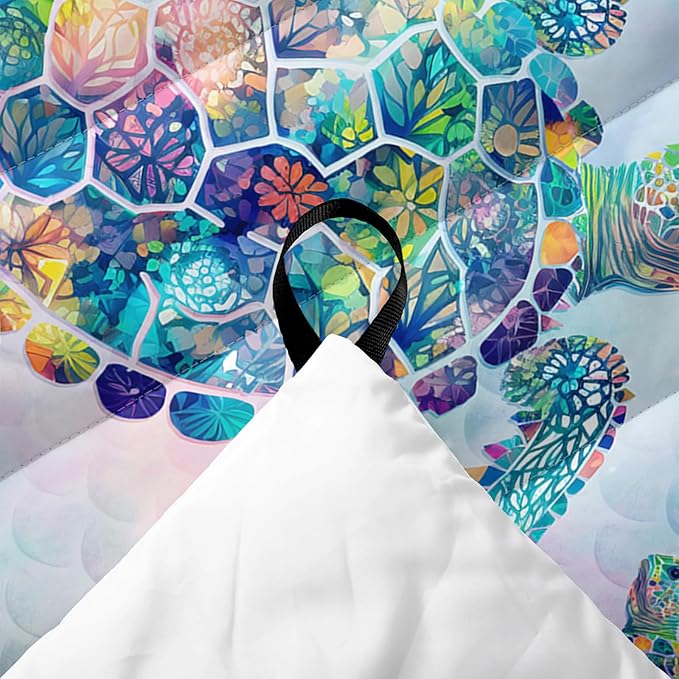 Axolotl Colorful Turtle Printed Camping Blanket,Rainbow Mermaid Scales Travel Blanket,Coral Starfish Lightweight Packable Outdoor Blanket,Ocean Animal Backpacking for Camping,sleeping,Hiking,Picnic