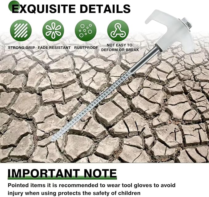 - Easy to Use:Screw in tent stakes is spiral tip design offers a strong grip, with the help of a cordless drill or impact driver screw tent stakes will have your awning, canopy, tents, guy lines or tarps secured to the ground in seconds. Spend less time setting up, let you more time with more time enjoying the outdoors your family