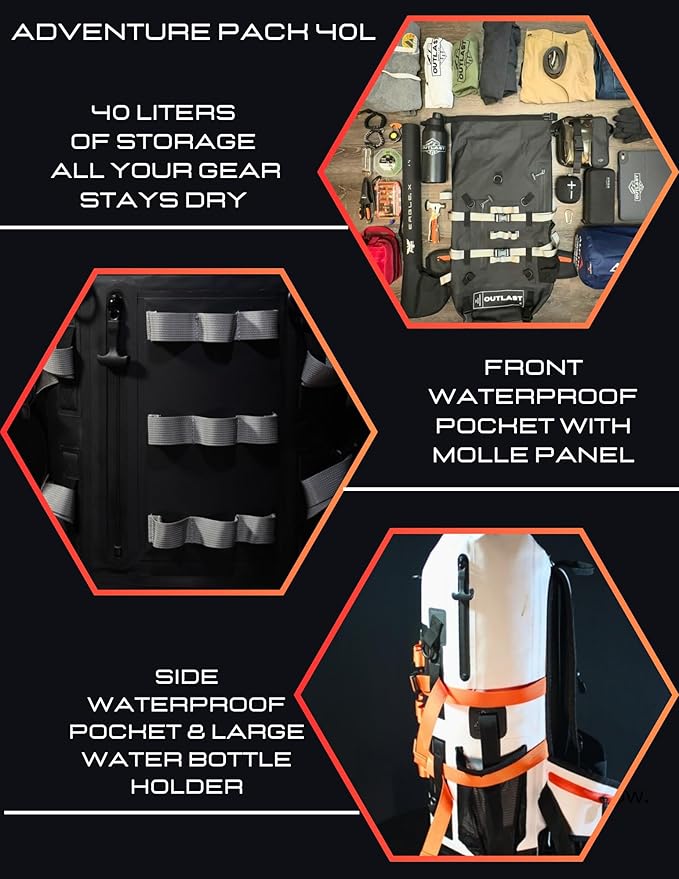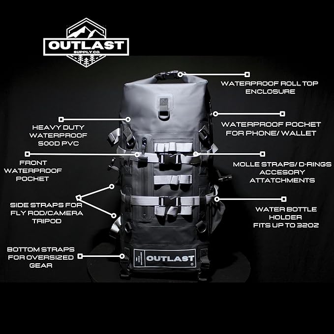 Waterproof Backpack 40L Roll Top Enclosure Dry Bag Fishing Backpack, Hiking,Camping Adventure Ready (Black)