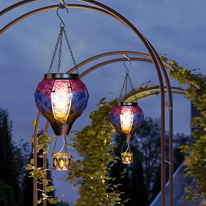 - Wide Application:Solar hot air balloon hanging garden light with metal "S" hooks can be easily hung anywhere, such as balconies,porches,ledges or trees.adding a cozy and romantic atmosphere to your home at night.