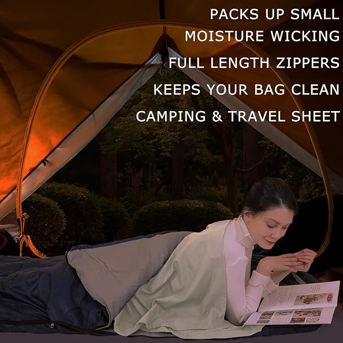 100% Cotton Sleeping Bag Liner with Full Length Zipper on 3 Sides; Single/Double Adult Sleep Sack for Travel & Camping, Multifunctional Travel Sheets (Unzipped 87”x87”) for Hotel, Lightweight