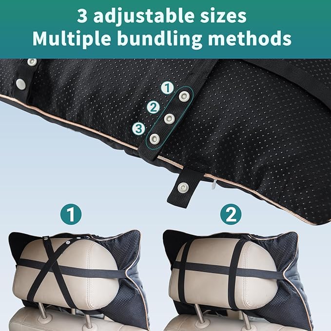 - Back Straps: The back of camping pillow is equipped with three 3-position adjustable straps, the horizontal strap is suitable for a variety of camping mats and can be hung on luggage poles. Vertical straps can be firmly fixed on the headrest of car seats