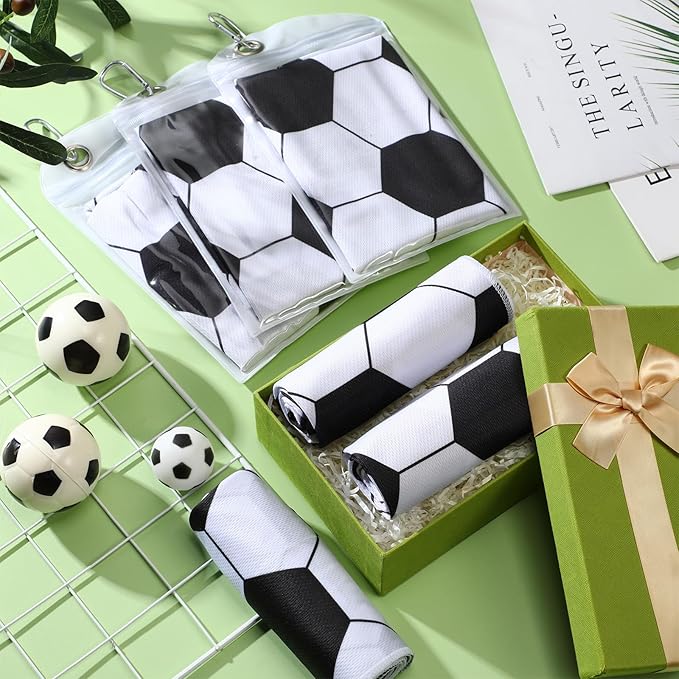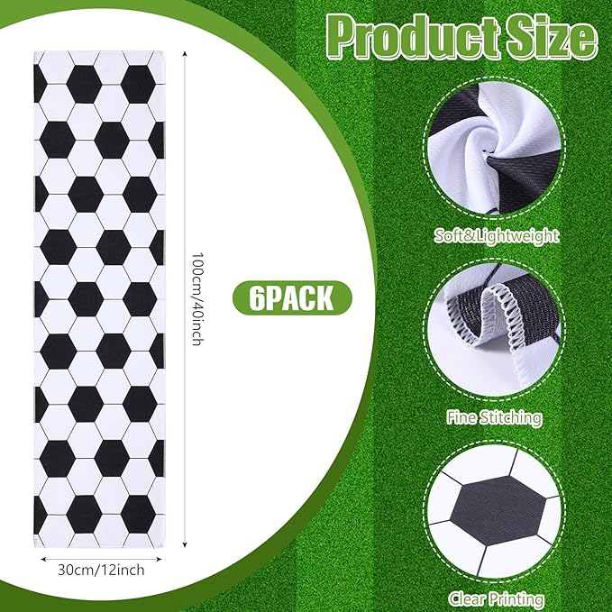 6 Pack Soccer Cooling Towels for Boys, Soccer Sports Towels with Bags, 40"x12" Breathable Chilly Towel, White and Black Microfiber Towel for Sport Team Gift