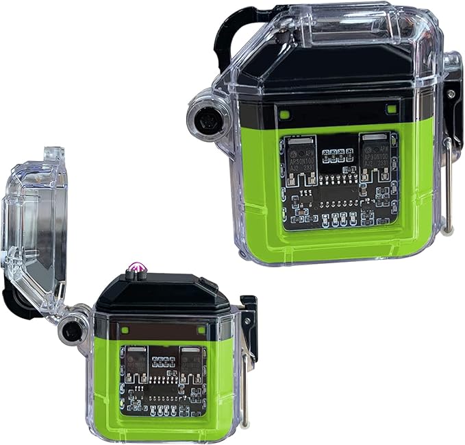 Waterproof Arc Lighter, Double Arc Flameless Plasma Lighter with Type C Charging Cord and Cord, LED Power Indicator Light, Electric Lighter for Indoor and Outdoor Camping and Cooking,IP56 Rated(Green)