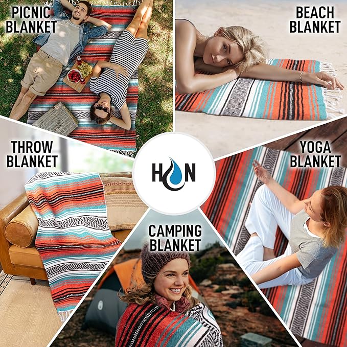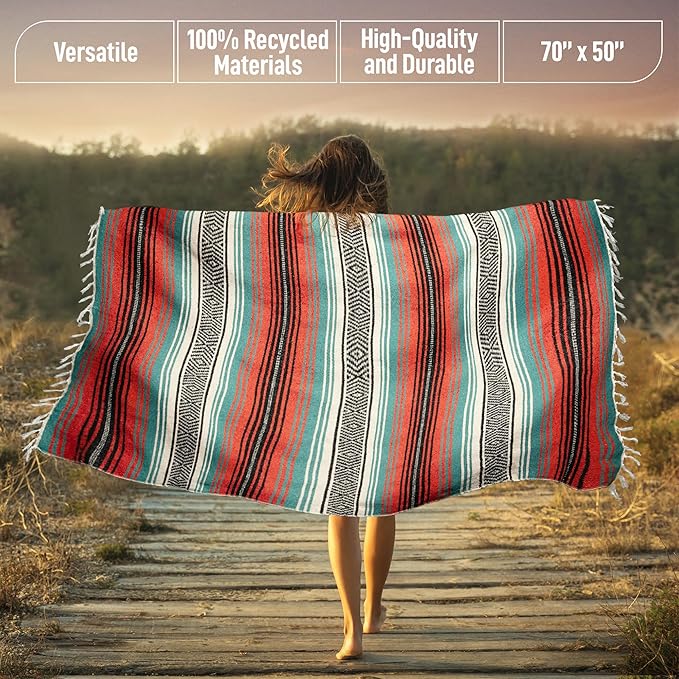 - VERSATILE HANDWOVEN BLANKETS: These serape blankets stay true to their heritage as each blanket is beautifully handcrafted with slight variations in size and weight as part of the timeless look and feel. Place it on the wall as part of your western home decor, or use it as a yoga blanket, car blanket, picnic blanket, saddle blanket, beach blanket, and much more.