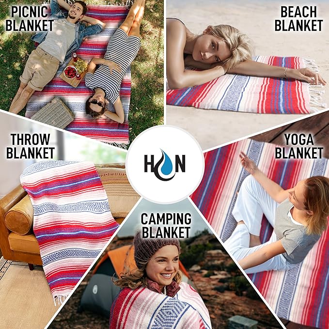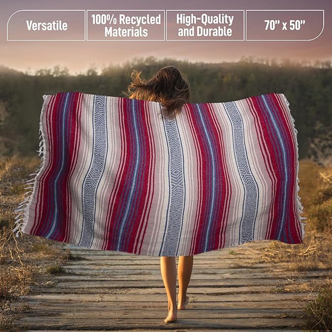 - VERSATILE HANDWOVEN BLANKETS: These serape blankets stay true to their heritage as each blanket is beautifully handcrafted with slight variations in size and weight as part of the timeless look and feel. Place it on the wall as part of your western home decor, or use it as a yoga blanket, car blanket, picnic blanket, saddle blanket, beach blanket, and much more.