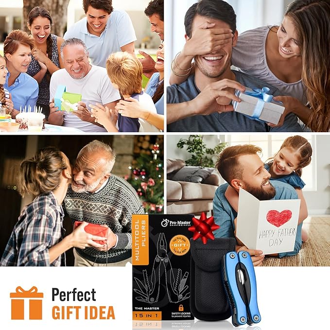 - 🎅GREAT FOR FATHER"S DAY: The Pro-Master 15-in-1 Multitool Pocket Knife is the perfect men’s gift choice. It will delight the man in your life as a gift from their daughter, wife, son, or as a Valentine’s Day gift for boyfriends, a Father’s Day gift for dads, or a birthday gift for teenage sons.