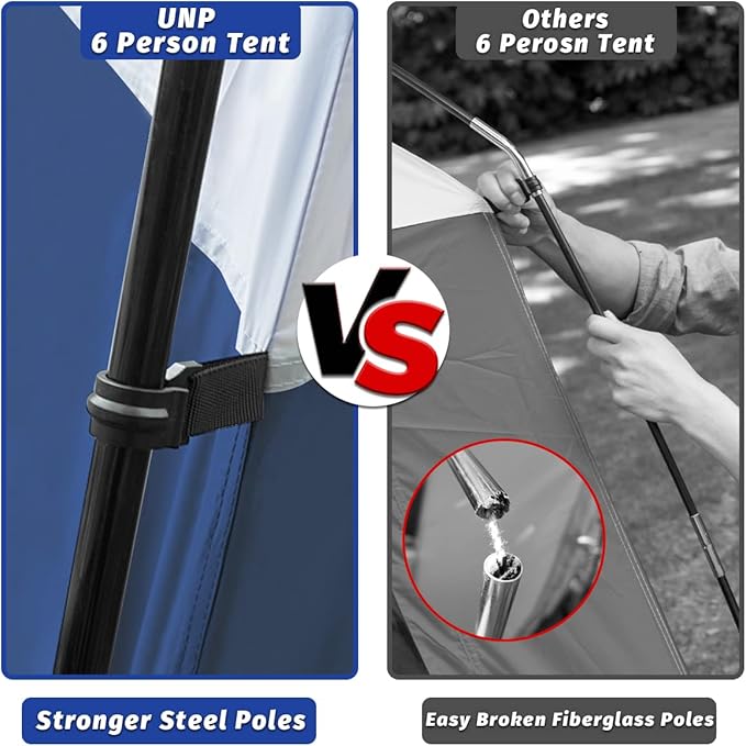 UNP Tents 6 Person Waterproof Windproof Easy Setup,Double Layer Family Camping Tent with 1 Mesh Door & 5 Large Mesh Windows -10'X9'X78in(H)