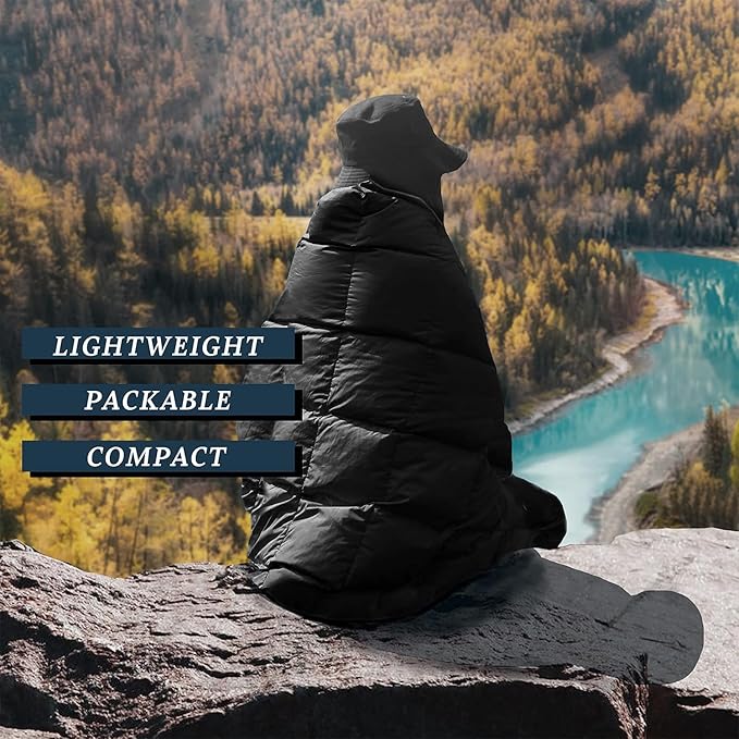 Down Camping Blanket,Puffy Down Blanket Packable Lightweight Down Throw Quilt Water-Resistant Outdoor Travel Blanket for Camping,Hiking,Stadium,Picnic,Car 50x77''Black