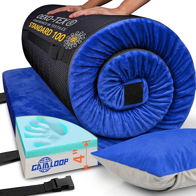 - 【Ultra Comfortable:Soft & Supportive】Gaialoop Thick Memory Foam Sleeping Pad is made of a scientific combination of 30D Support Foam and 40D Memory Foam. The high density poly foam acts as a supportive foundation to prevent you from hitting the ground when you lie on the pad. The memory foam conforms to your body shape, responses to your body heat and pressure, offers you enjoyable comfort and protects your back, spine, and hips when side sleep.