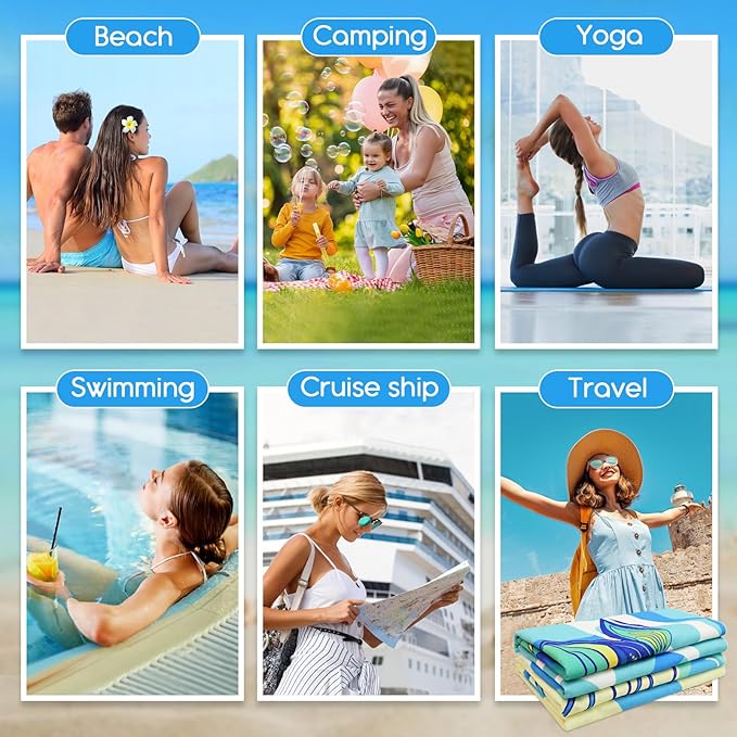 - VERSATILE USAGE: Beach towels set of 2 pack. Can be used as a beach blanket, pool towel, bath towel or even camping towel, perfect for beach, pool, sauna, hotel, yoga, travel, bathroom, camping and picnic, indoor or outdoor. Great summer gift for family, friends, especially beach lovers and swimmers.