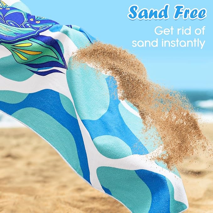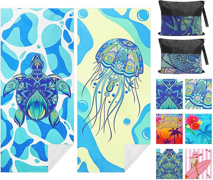- ORIGINAL DESIGN: our large beach towel with the latest and various styles that will definitely make you stand out on the beach or in the pool. The patterns are a combination of turtles, mandalas, jellyfish, stripes and tropical elements. It is a perfect companion when you do yoga or pilates. Also the perfect beach accessories for adults or kids/teens, outdoor recreation, hiking.
