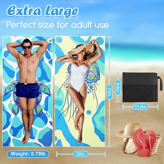 - LIGHTWEIGHT AND COMPACT: Made of compact microfiber fabric, measures 71x32 inches, this beach towels oversized folds up lightweight and comes with storage bags. Easy to carry and save space in your luggage.