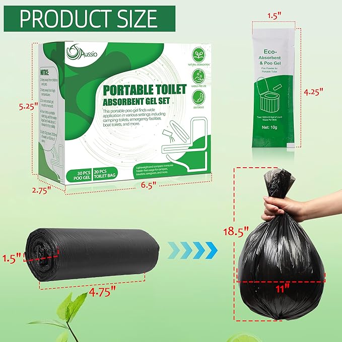 - PORTABLE POO GEL FOR OUTDOOR USE - Crafted from premium gel, this camping toilet gel efficiently absorbs and retains large amounts of liquid waste. The treated waste degrades naturally within 7 days, enriching the soil and catering to environmentally conscious travelers.