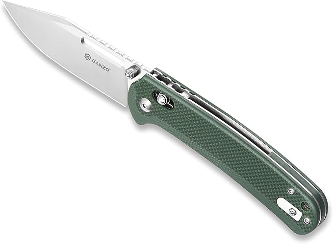 Ganzo G768-GB EDC Folding Pocket Knife Razor Sharp D2 Stainless Steel Blade G10 Handle with Clip Outdoor Foldable Pocket Knife Hunting Fishing Hiking Gear Best Gift for Men (Green)