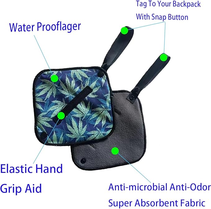 - 【HOW TO USE】You only need to wipe it with the absorbent side (the side with no pattern)during use, and the back can be gripped by the strap to make the process safer without worrying about the pee cloth falling off. The colourful pattern on the back adds a touch of colour to your journey. After use, you can choose to close the side with a button or wash it in water and hang it on the backpack to dry.