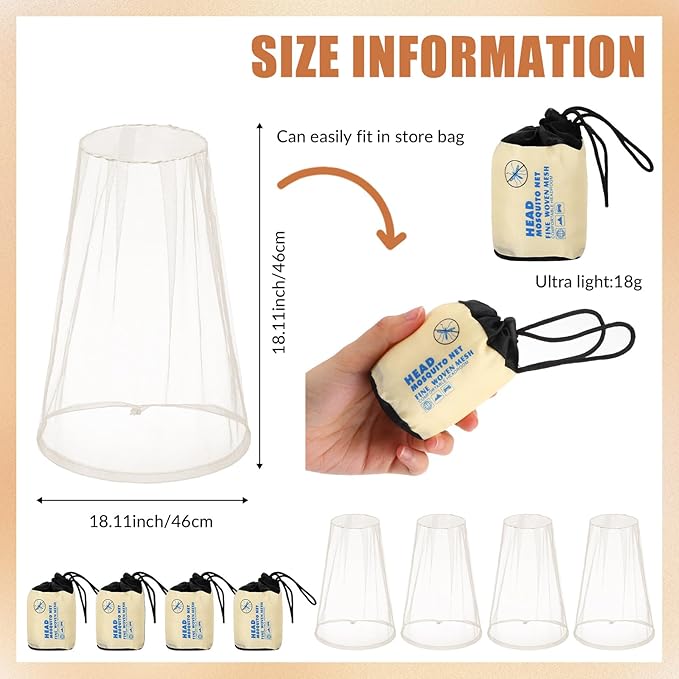 • Size: each mosquito net is approx. 18.11 x 18.11 inch/ 46 x 46 cm in size, big enough for men, women, youth, or elderly wearing