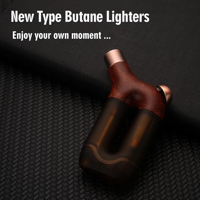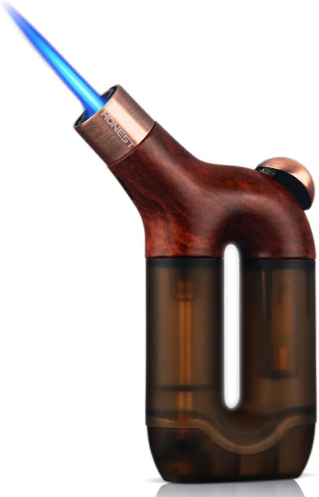 HONEST Torch Lighter Single Jet Flame Butane Lighters Refillable Torch Lighters Adjustable Gas Lighter Windproof Lighters Gift for Men BBQ Grill Camping Without Gas (Wood Grain Brown)