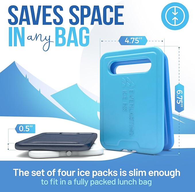 - XL Slim Design: Measuring 4.75 inches wide and 6.75 inches high, these thin ice packs for lunch box fit easily into any space, providing efficient cooling without taking up much room. They make a great large ice packs for coolers.