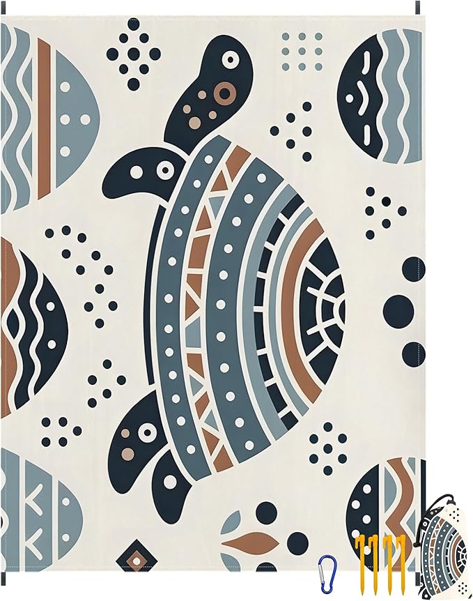 - 【Beach Blanket Waterproof Sandproof】This quick-drying, breathable blanket is made of ripstop polyester. You can shake the beach mat to get rid of sand or other debris.Unfolded Size:108''x 82'', it could hold up to 1-6 people, providing plenty of space for people to sit, lay or play.Includes 4 stake anchors, a safety carabiner and a carry bag.