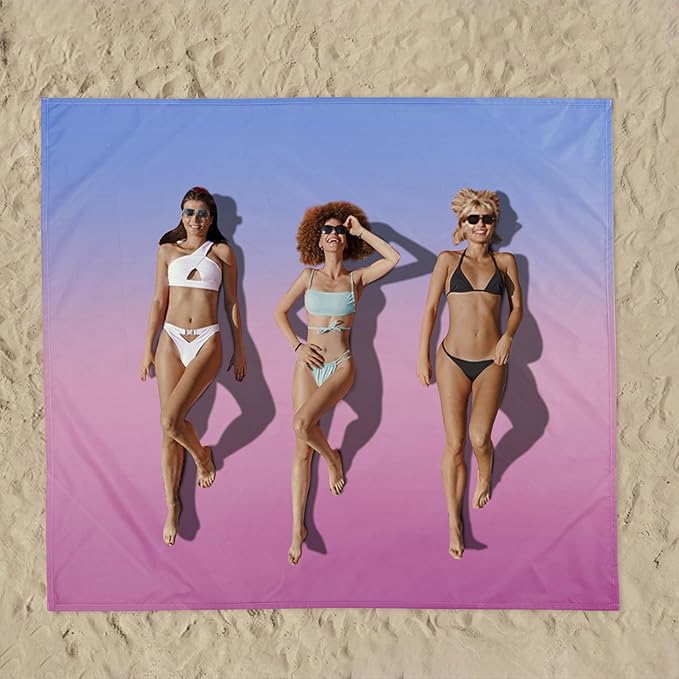 - Add a Touch of Style: The white-pink gradient beach blanket enhances your beach setup with a pop of color and personal flair. Its stylish design not only looks great but also makes your spot easy to find. Vibrant pink picnic blankets will be your beach accessories and it a must have beach item!