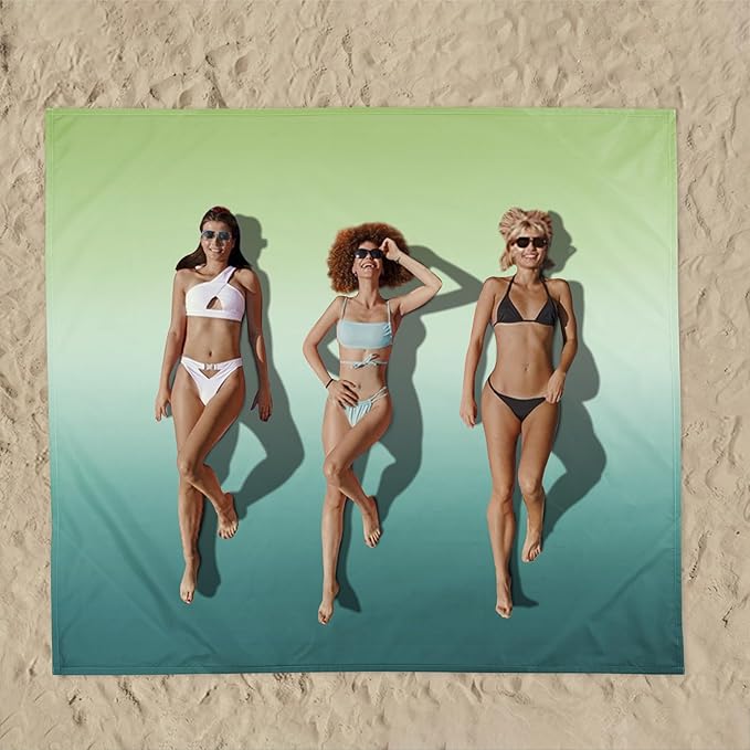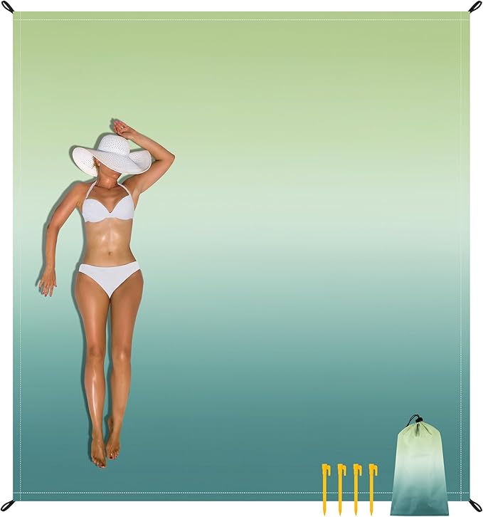 Beach Blanket Waterproof Sandproof, 10'X 9' Oversized Beach Picnic Blankets, Beach Mat Sand Free Windproof w/Stakes and Corner Sand Pocket for Outdoor, Travel, Camping, Beach Essentials-Teal Gradient