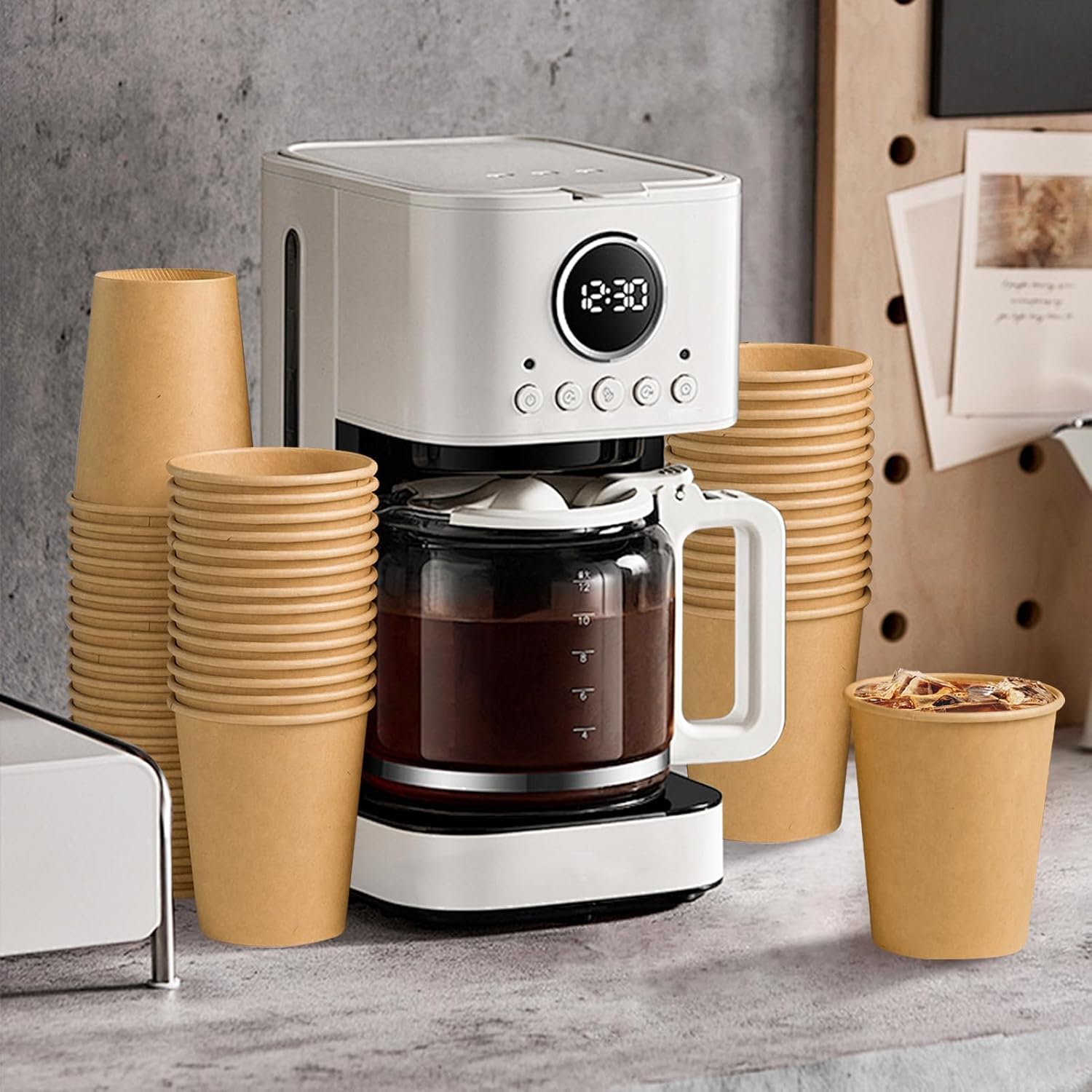 1000 Pack 8 oz Paper Cups, Brown Kraft Disposable Paper Coffee Cups, Unbleached Paper Cups for Hot/Cold Beverage Party, Picnic, Travel, and Events.