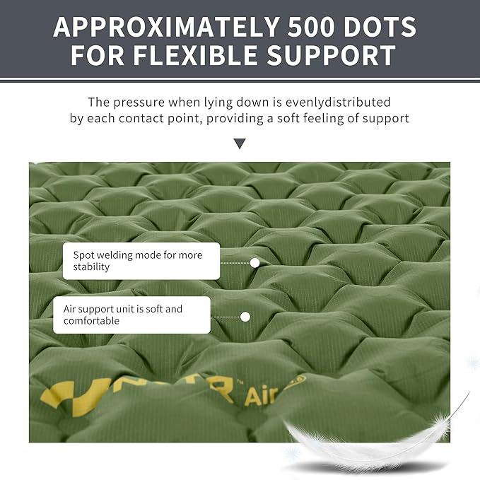 - COMFORTABLE AND STURDY SLEEPING PAD: Punching point structure, providing tough support, the pressure is evenly distributed by each contact when lying down, providing a soft sense of support, the whole soothing relaxation. 73.2 * 22.6inch/186 * 58cm size is enough for you to turn over freely on the air cushion