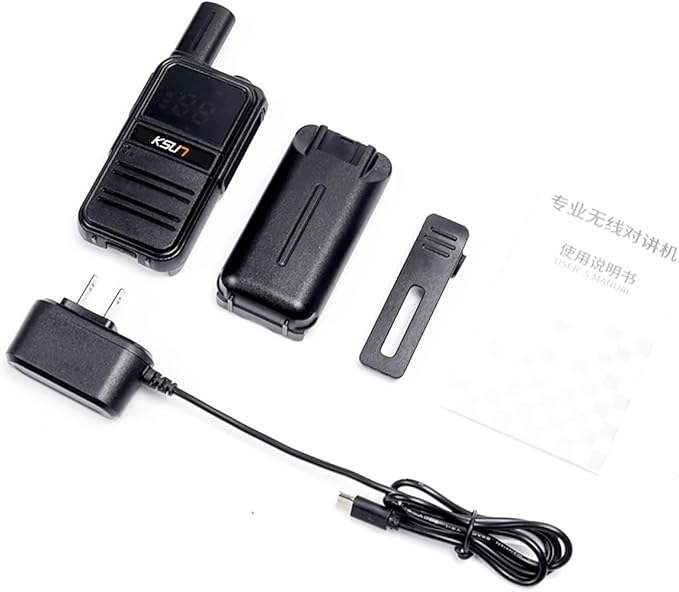 - Included Components : 2 x Walkie Talkies, 2 x 4000mAh Rechargeable Batteries, USB Charging Cable, likely with built-in VOX voice control, type C compatibility, and LED flashlight 2 x Walkie Talkies, 2 x 4000mAh Rechargeable Batteries, USB Charging Cable, likely with built-in VOX voice control, type C compatibility, and LED flashlight