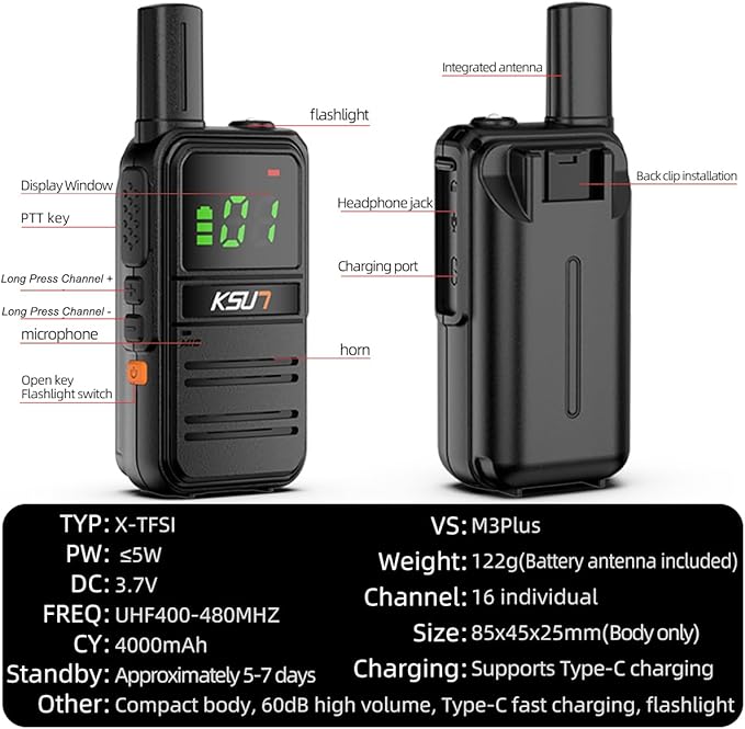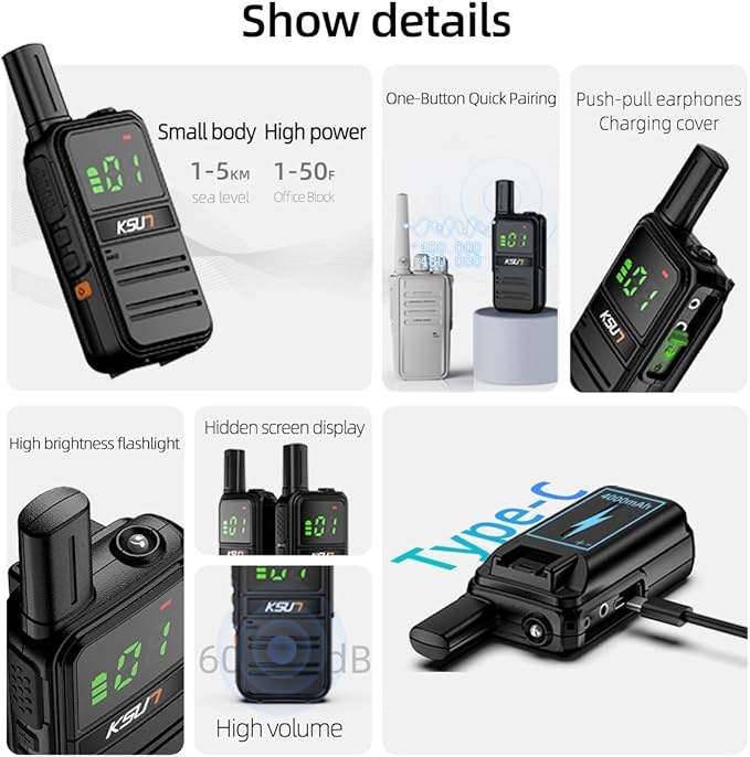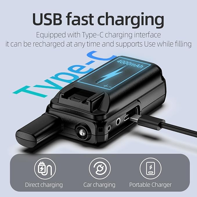 - Reliable Rechargeable Battery: With a powerful 4000mAh battery, our walkie talkies provide extended usage time for your daily needs. The fast USB charging function allows you to quickly recharge the battery, ensuring uninterrupted communication throughout the day. Depend on our walkie talkies for dependable and long-lasting performance.