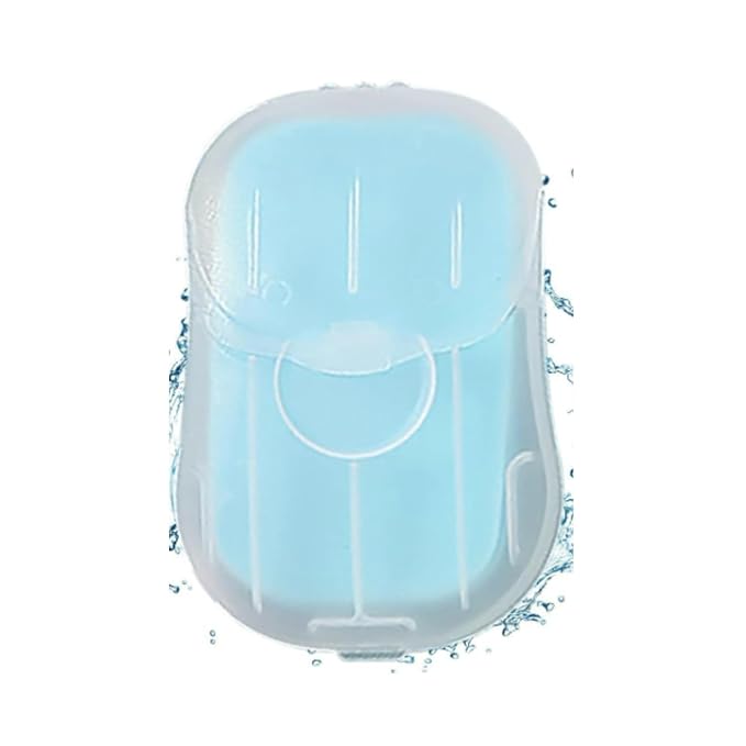 50Pcs Blue Portable Soap Sheets, Mini Portable Travel Soap Paper Sheets Disposable Water Soluble Hand Washing Bath Scented Paper Soap Camping Soap and Shampoo for Outdoor, Camping Hiking Personal Care