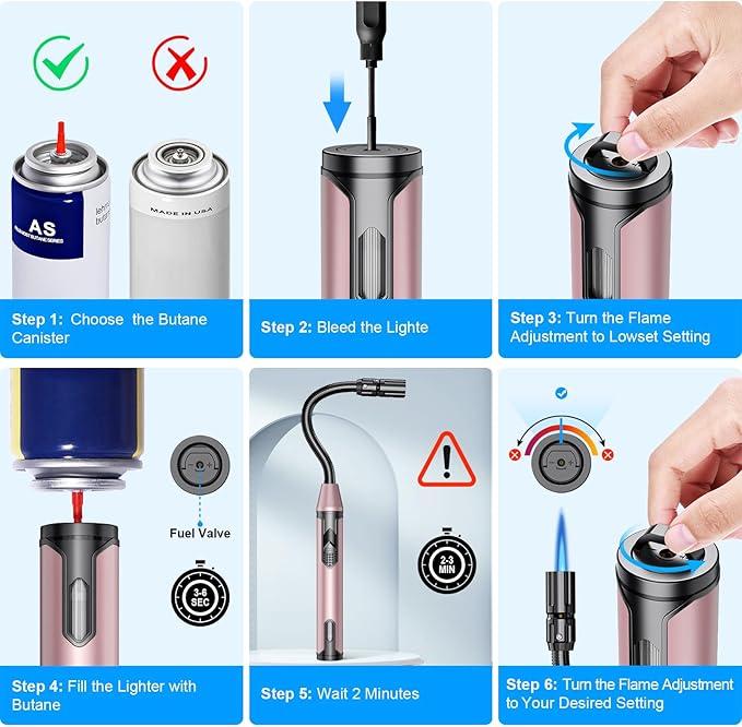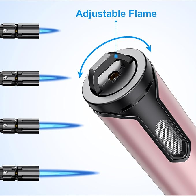 - REFILLABLE&ADJUSTABLE TORCH LIGHTER: Our Butane Lighter is Refillable, Refill the Torch Lighter with any Brand of Butane(Long Nozzle Stem). An Adjustable Flame Wheel on the End of the Lighter Lets you Easily Control the Flame Height, Providing Extra Flame Height when Needed.