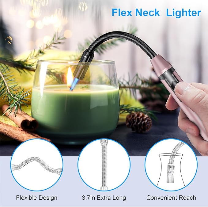 - LONG FLEXIBLE NECK LIGHTER: This Windproof Torch Lighter Features a 4.5 inch 360 Flexible Neck. It Can be Rotated to Different Angles to Meet your Different Needs and Long Flexible Neck Keeps a Safe Distance from Your Hand, Perfect for Lighting Deep Jar Candles.