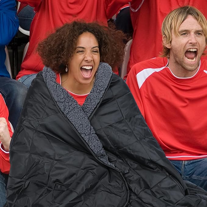 - Windproof & Water-resistant Back: Windproof blanket for bleachers, features water repellent backing. It is your ideal partner to keep dry in a rainy camp site or wet grass for picnic or sandy beach. Please note that the plush sherpa lining is not waterproof.