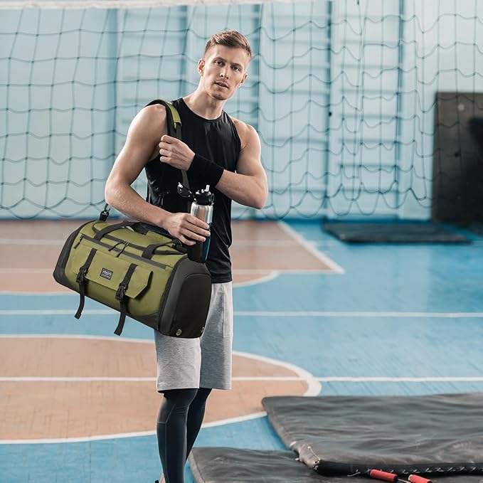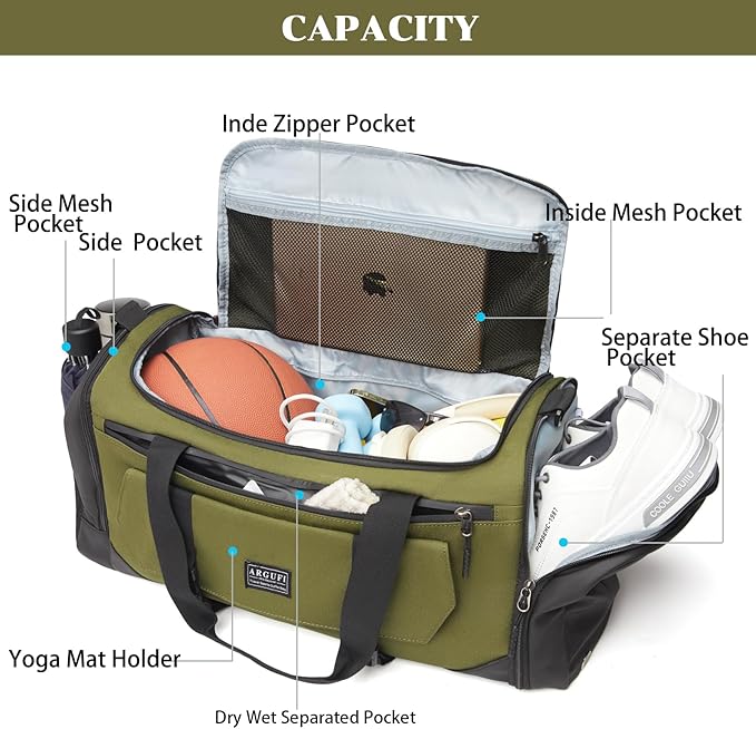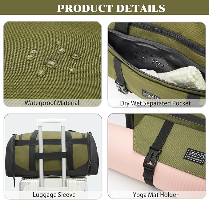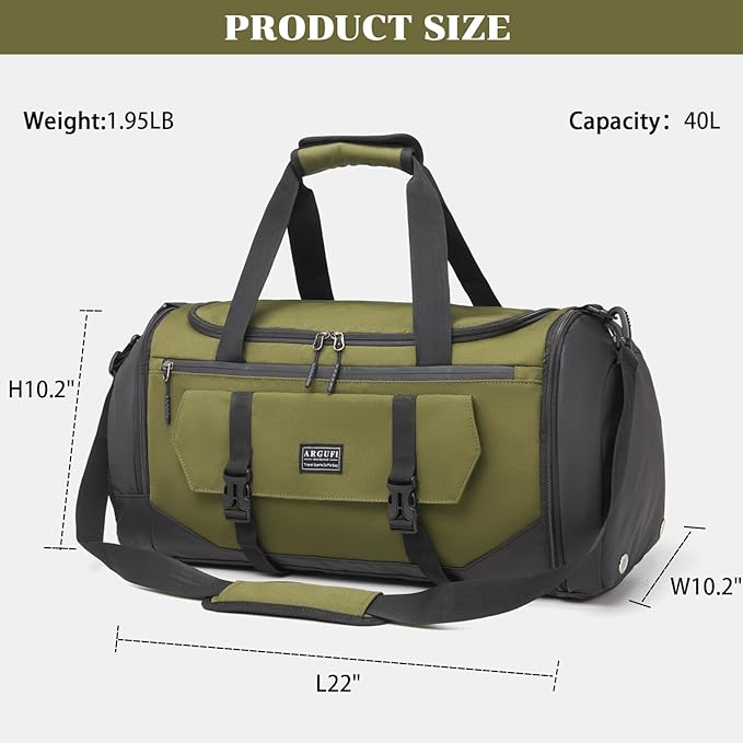 - [Dry Wet Separated Gym Bag] The High Density Water Resistant Material Can Help You To Separate Dry Items And Wet Items,if You Have Wet Clothes Or Towel,you Can Put It In This Travel Duffle Bag. Hidden Water-resistant Pocket Is Perfect For Storing Wet Clothes And Swimsuits. Great For Swim Practice Or Sweaty Gym Clothes.