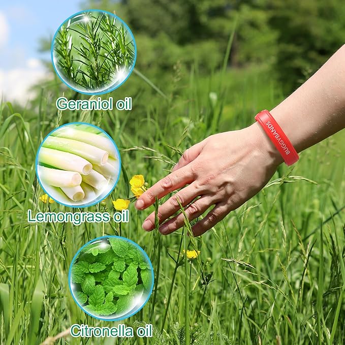- Natural & Deet-Free - Our bracelets are made with geraniol oil, lemongrass oil and citronella oil that essential oils can effectively repel mosquitoes. Deet-free and safe for children and baby