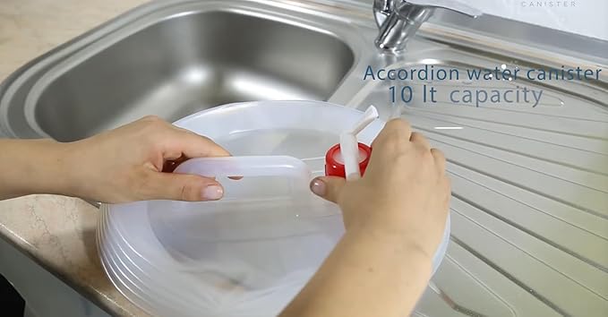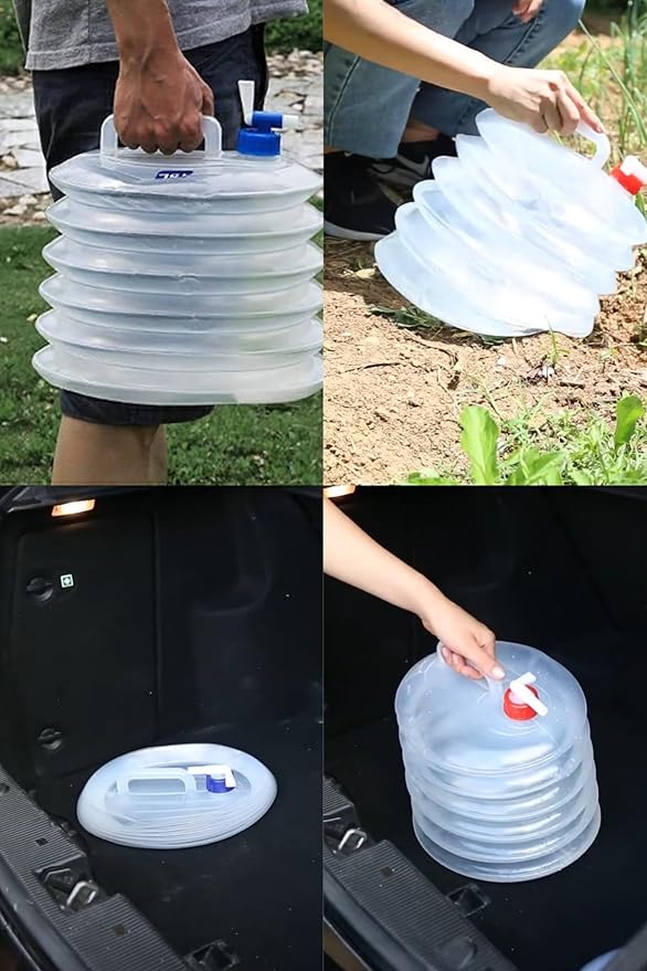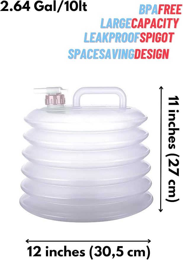 - Large Capacity & Space-Saving Design: Holds up to 2.64 gallons (10 liters) of water when filled. When folded, it's only 1.6 inches thick, making it extremely portable and space-saving. Perfect for camping, hiking, and emergency preparedness.