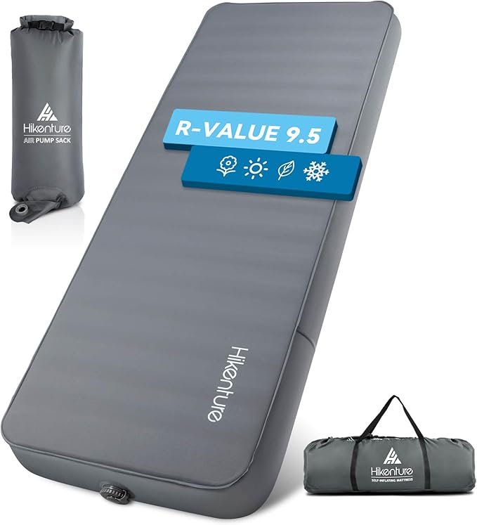 Hikenture 4 INCH Thick Self Inflating Sleeping Pad with 9.5 R Value, Comfort Plus Camping Mattress with Pump Sack, Inflatable Foam Insulated Camping Pad, Portable Camping Mat for 4-Season