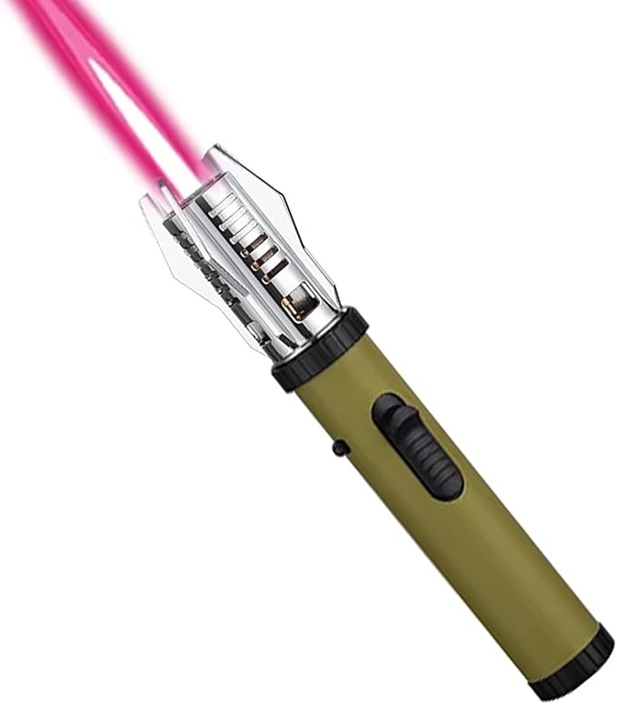 Torch Lighter, Camping Outdoor Windproof Straight Flame Lighter, Adjustable Red/Blue Flame Torch Lighter, Refillable Butane Gas Windproof Jet Flame Cool Lighter for Candle BBQ Gift (NO Gas) (Green)