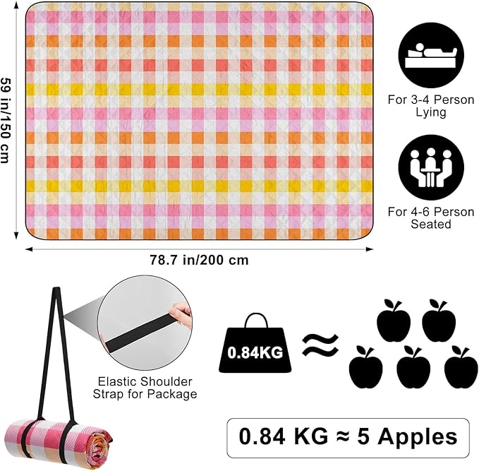 - Easy to Pack: Once your outdoor fun is over, you can easily pack up the picnic blanket using the included carrying strap, this practical feature makes it simple to fold, secure, and carry the outdoor blanket, allowing for easy transport to and from your favorite outdoor locations, no more struggling with bulky, awkward blankets