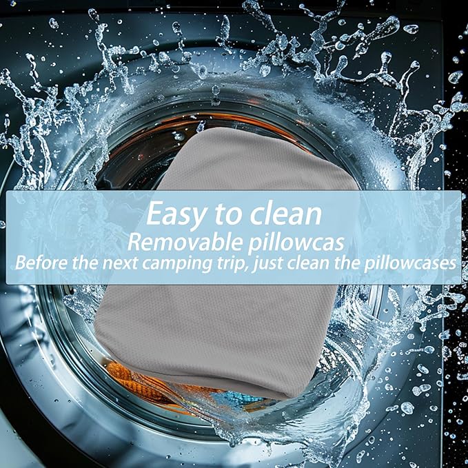- 【Washable Removable Pillowcase】The removable pillowcase can be easily taken off and washed after your camping trip, ensuring your pillow stays fresh and clean. Normal machine washing and drying are allowed. (Note: Memory foam itself is not washable.)