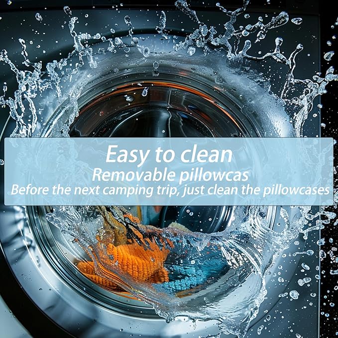 - 【Washable Removable Pillowcase】The removable pillowcase can be easily taken off and washed after your camping trip, ensuring your pillow stays fresh and clean. Normal machine washing and drying are allowed. (Note: Memory foam itself is not washable.)
