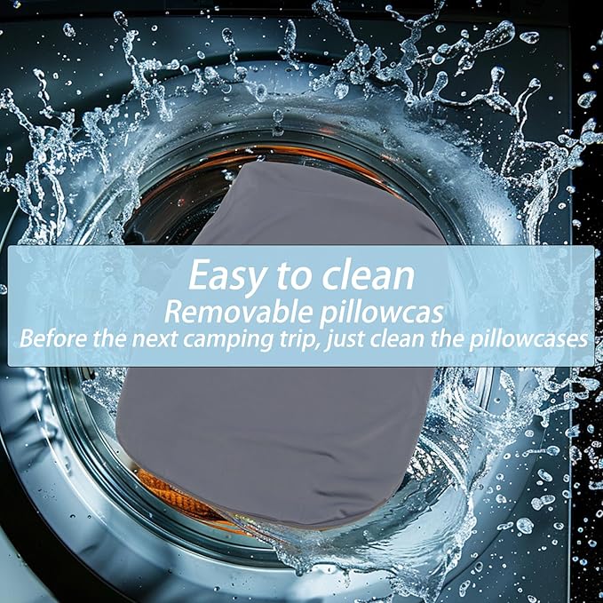 - 【Washable Removable Pillowcase】The removable pillowcase can be easily taken off and washed after your camping trip, ensuring your pillow stays fresh and clean. Normal machine washing and drying are allowed. (Note: Memory foam itself is not washable.)