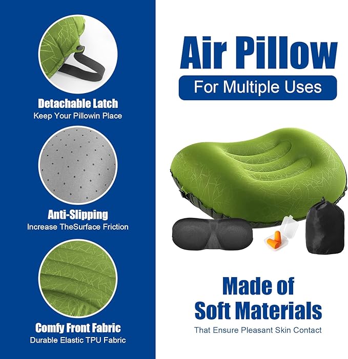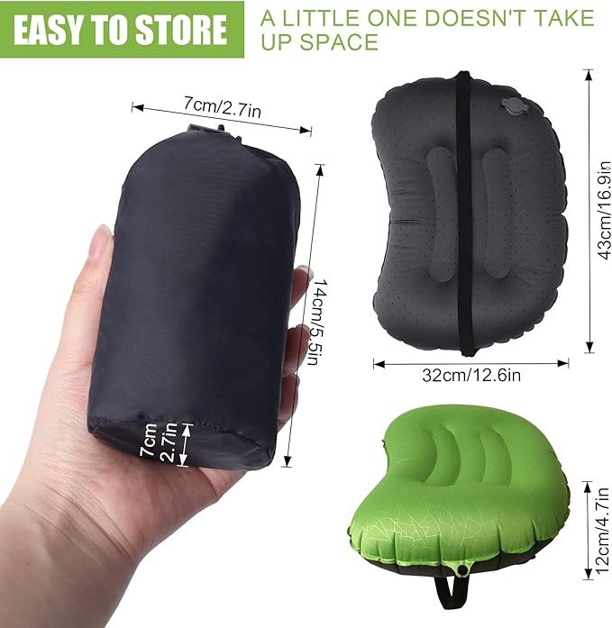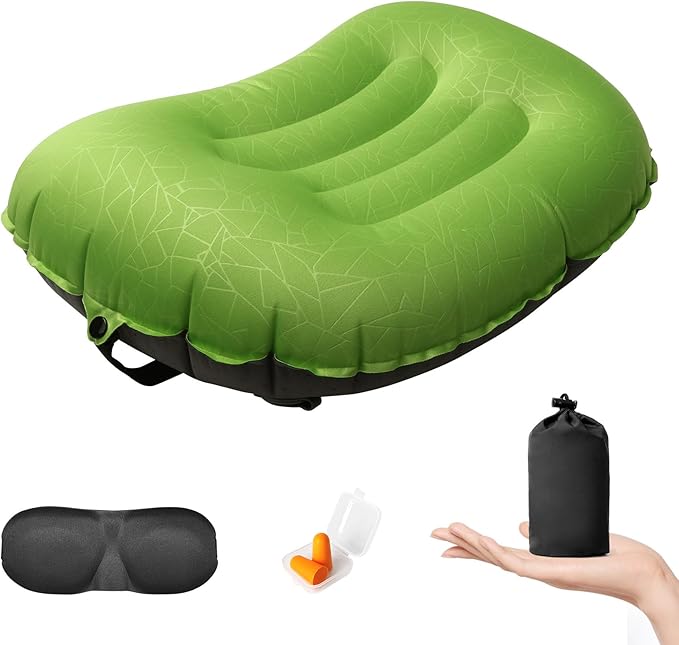 DAWNTREES Inflatable Pillow for Camping,Portable Compressible Ultra-light Travel Inflatable Pillow for Sleeping,Support The Neck and Lumbar,Backpacking Essentials (Green)
