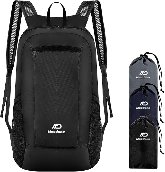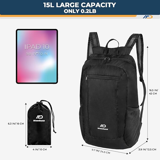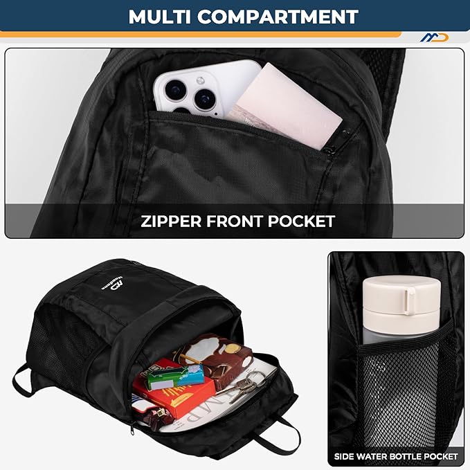 - 【Multipurpose】This Foldable backpack provides enough space for outdoor travel, camping, hiking, day trips and shopping. Comes with a main zipper pocket, a front zipper pocket and two mesh side pockets. The main compartment provides enough storage space for day trips, hiking and shopping. It is also an ideal choice for international travel at the airport.