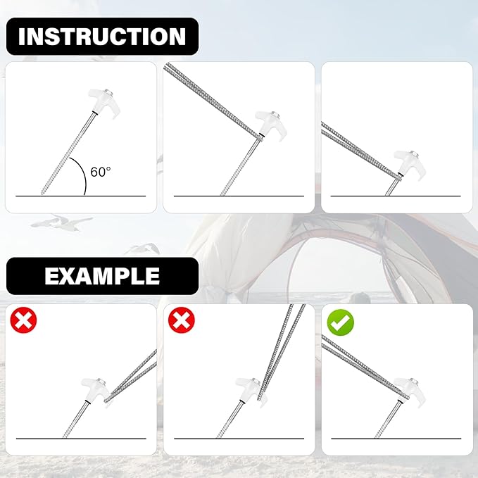 - Easy to Use --- Our tent stakes are designed with metal threads, and can be quickly and easily secured to the ground using a cordless drill or impact driver. This easy and simple installation process saves you time and energy.