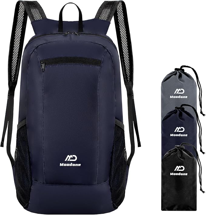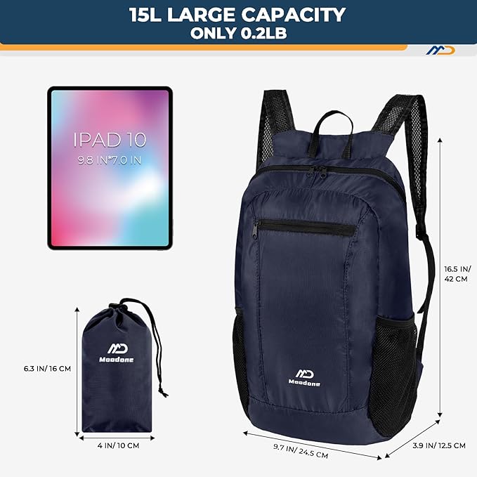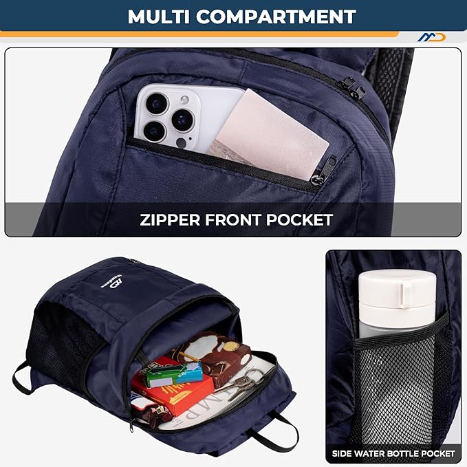 - 【Multipurpose】This Foldable backpack provides enough space for outdoor travel, camping, hiking, day trips and shopping. Comes with a main zipper pocket, a front zipper pocket and two mesh side pockets. The main compartment provides enough storage space for day trips, hiking and shopping. It is also an ideal choice for international travel at the airport.
