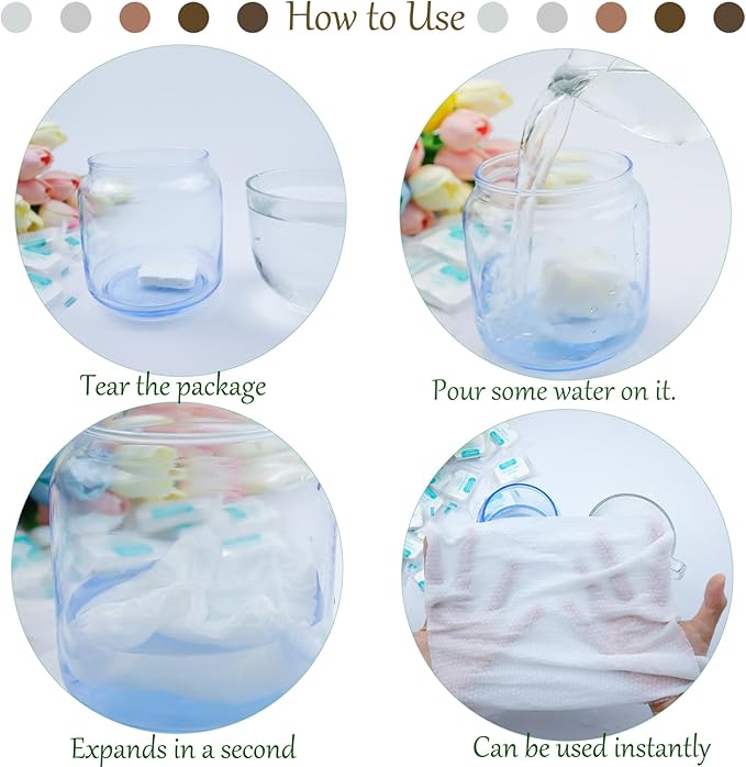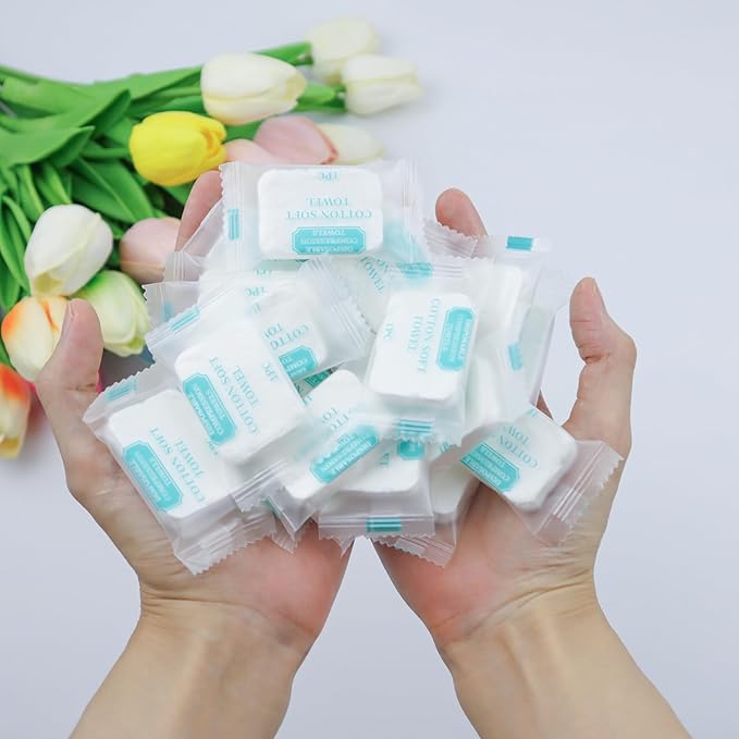 - Compact Size: Each magic towel tablet is compressed to a small size, measuring 1.2" in width by 1.6" in length, making it perfect for travel, allowing you to easily pack them in your carry-on, backpack, or purse.