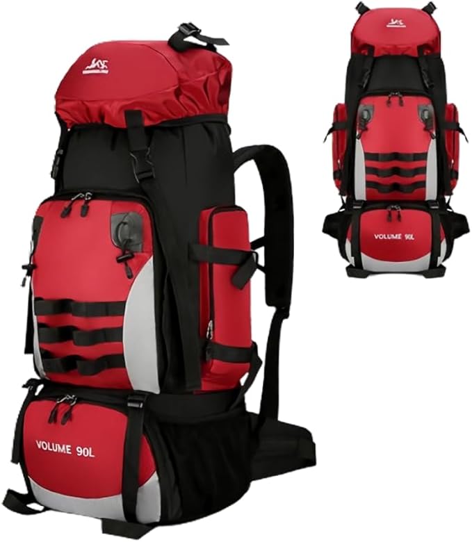 • 【Hiking Backpack Structure】: The 90L camping backpack main compartment is drawstring closed, hiking backpack roomy enough for your storage hiking gear, clothes and luggage, one bottom zipper pocket can store shoes separately from the clothes in the main pocket. Two side mesh pocketes are suitable for placing cups and umbrellas. This mountaineering backpack has one front zipper pocket and two side pocketes for separate and orderly storage.