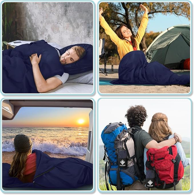 • Multifunctional - The adult sleep sack measures 86.6 x 37.4 in. And after fully opening the zipper and unfolding,the size is 86.6x75 inches.It is not only a single person sleeping bag liner, but also a double bed sheet,and the integrated pillow sleeve gives you extra comfort and protection. Whether you are backpacking or traveling for business, this travel sheet for hotel will keep you clean wherever you go,and you don't have to worry about dirty bedding.